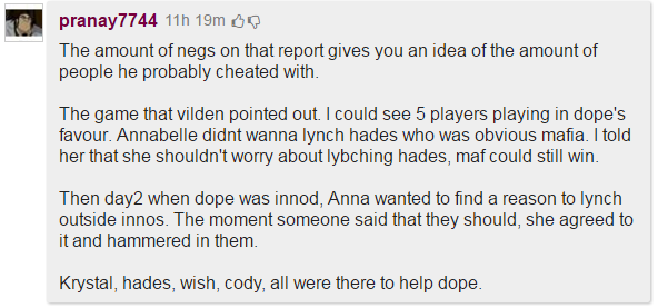Pranay insists on lynching calvin all game. Anna is never willing.