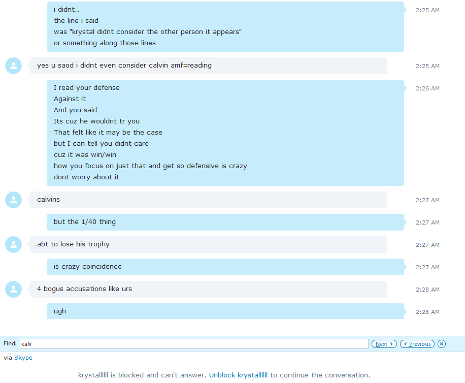 Krystal never considers calvin as mafia.
