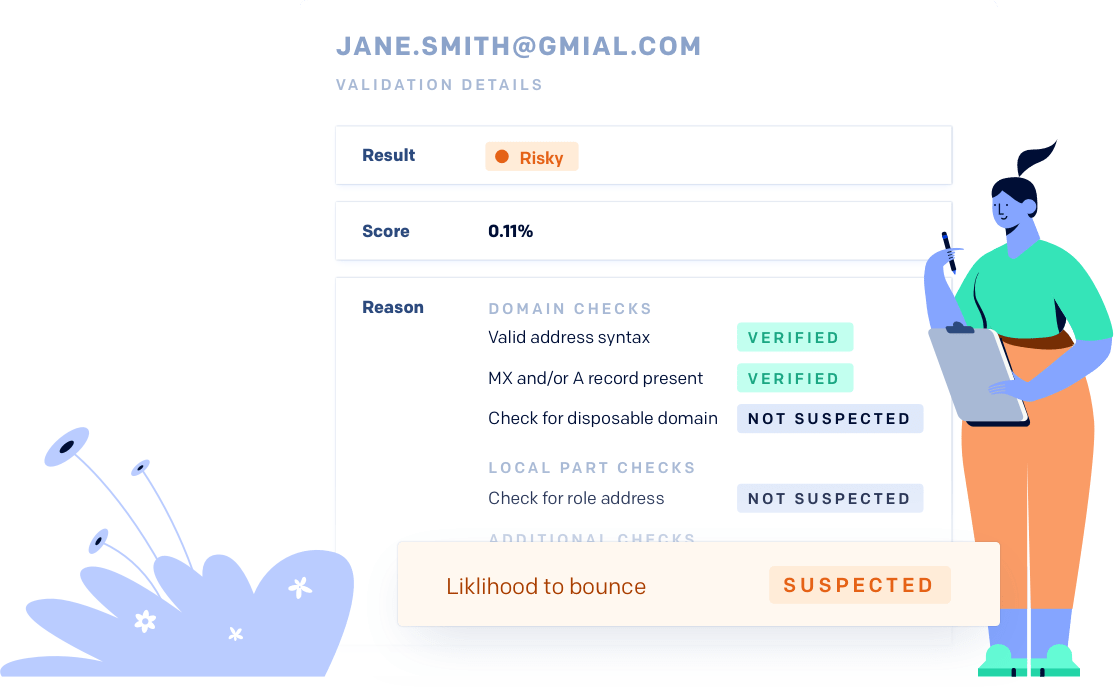 We also supply a web-based email verifier to verify your addresses, and we can likewise update your with a "VERIFIED" column showing a or status for each address. Lastly, More Discussion Posted Here can utilize our to incorporate our email validator into your own software. So, if you're utilized to utilizing a third-party e-mail confirmation service like or, you can stop doing that since our tool is,, and.